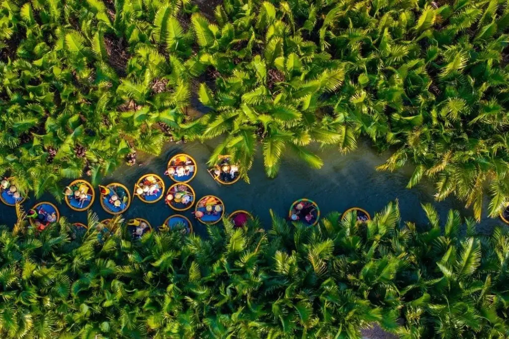 Thử tưởng tượng bạn đang ngồi trong một chiếc thuyền thúng tre, lắc lư dưới tán dừa trong rừng dừa Bảy Mẫu rộng lớn, nước dưới thuyền lấp lánh phản chiếu ánh nắng chiều. Xung quanh là tiếng chim hót, gió thổi xào xạc qua những tán lá lau sậy, và bạn quên mất thời gian – đó chính là cảm giác mà Cẩm Thanh mang lại.
